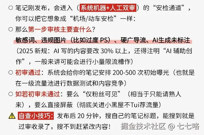 改完后等待2小时,系统会重新审核,大部分笔记都能恢复流量。切记别乱删稿,频繁删稿会让账号被判定为「异常用户」。