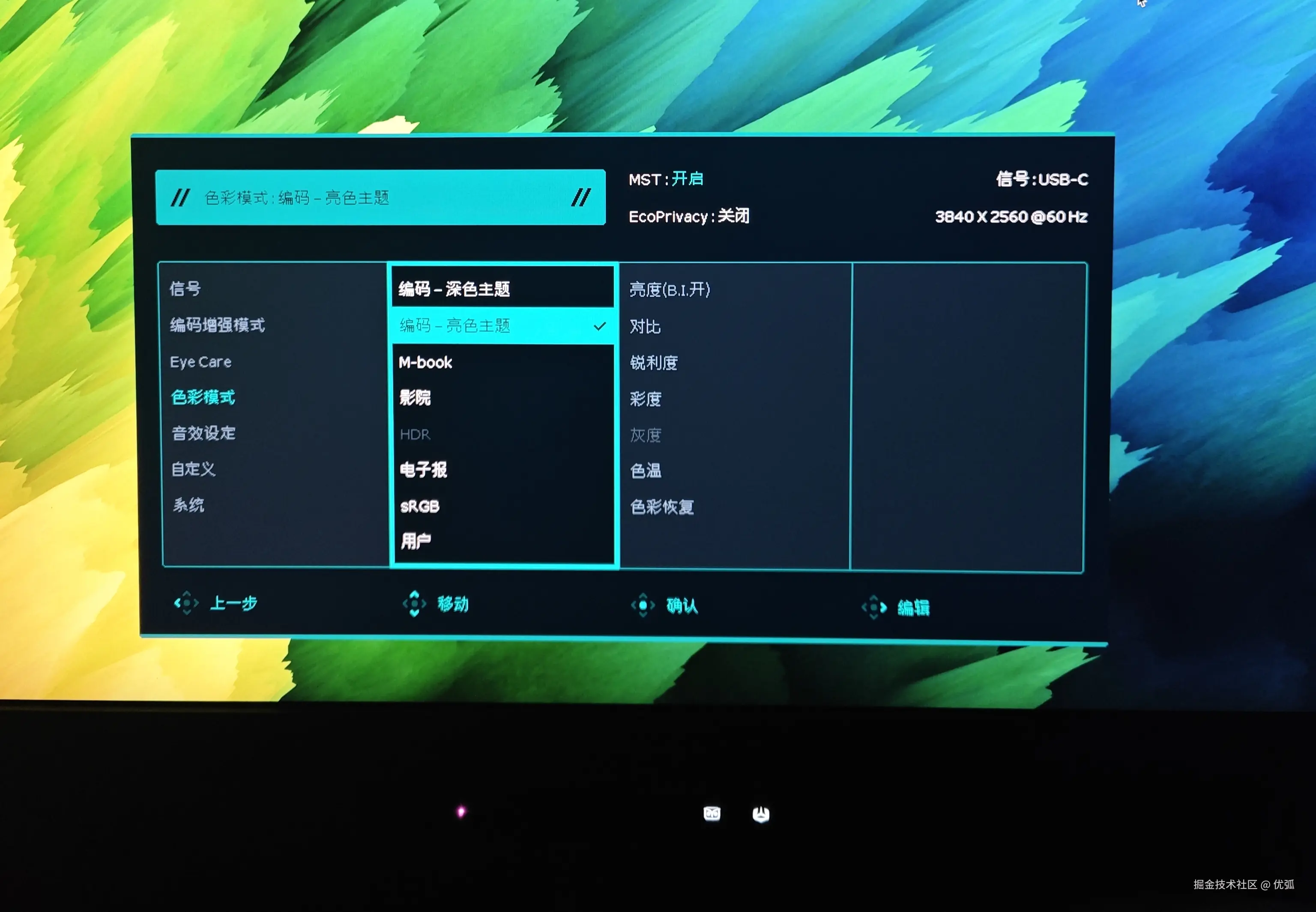 当然你也可以直接用显示器OSD菜单,路径一般是 菜单 → 色彩模式 → 选 编程(深色)/编程(浅色)。