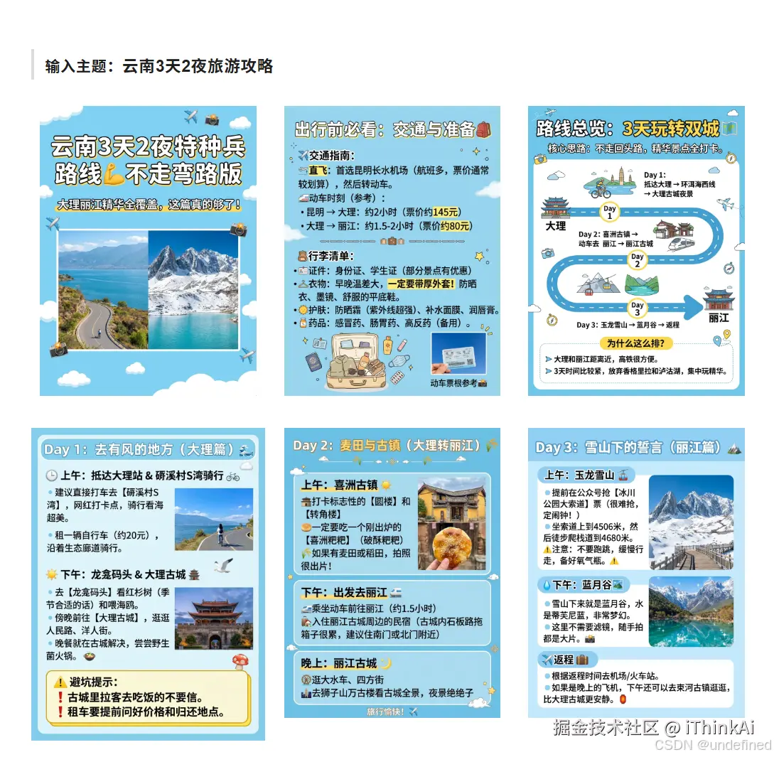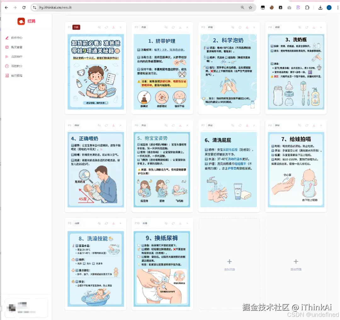 第一步,生成大纲:AI提供标题、正文 + 多张图片的内容描述(文案+配图详解)。编辑超灵活——修改任何部分、调整排版、随意添加图片页面。