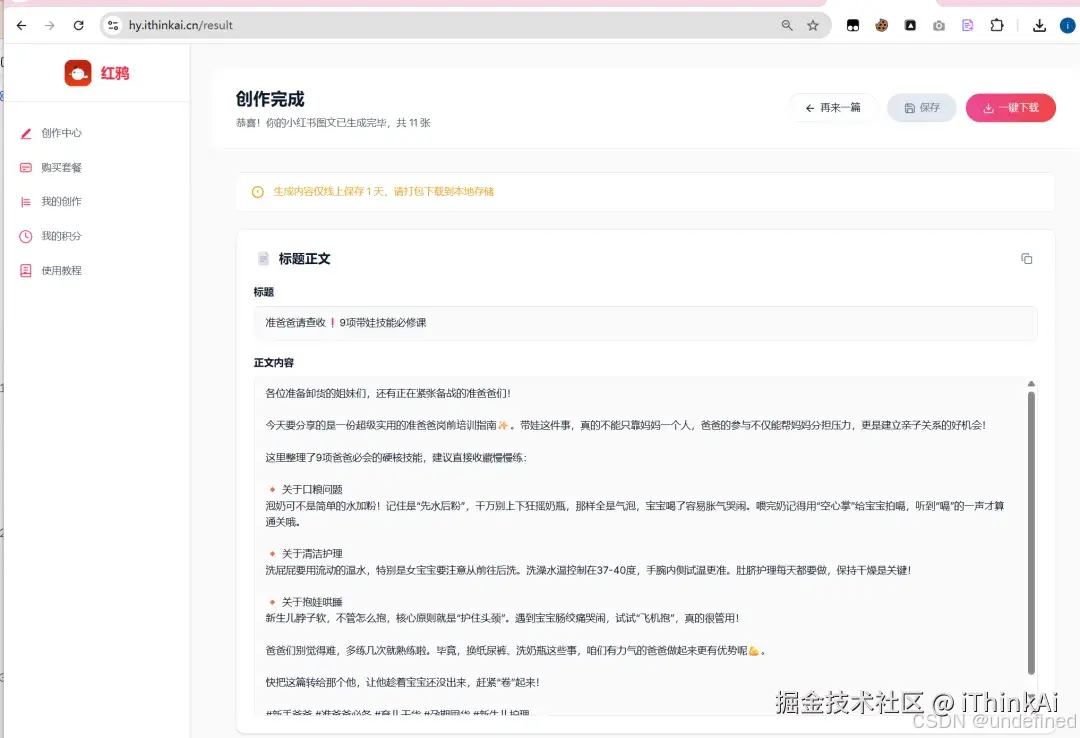 至此,一篇原创的小红书图文完成,整个过程就几分钟!