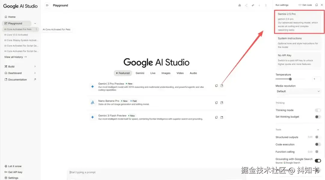 1.打开一个你选择的AI模型(gemini2.5pro)。
