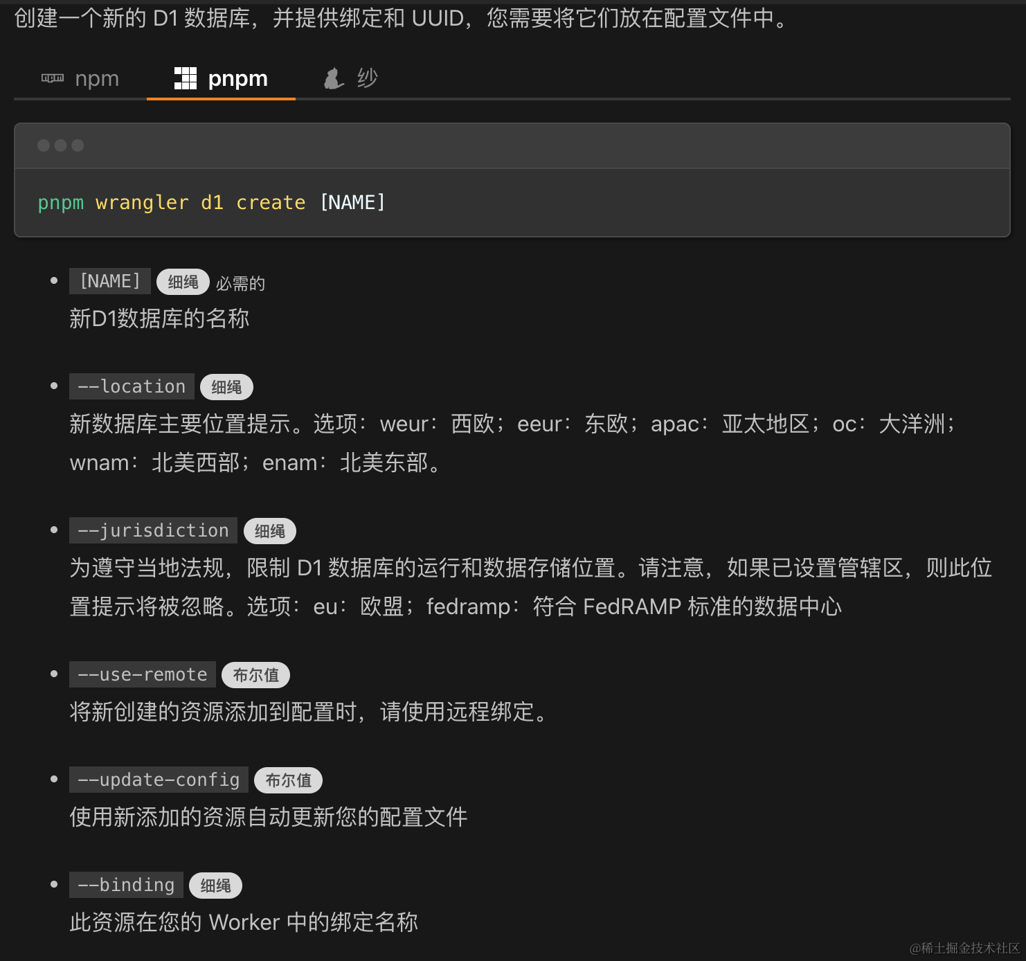 创建一个新的 D1 数据库,并提供绑定和 UUID,您需要将它们放在配置文件中。