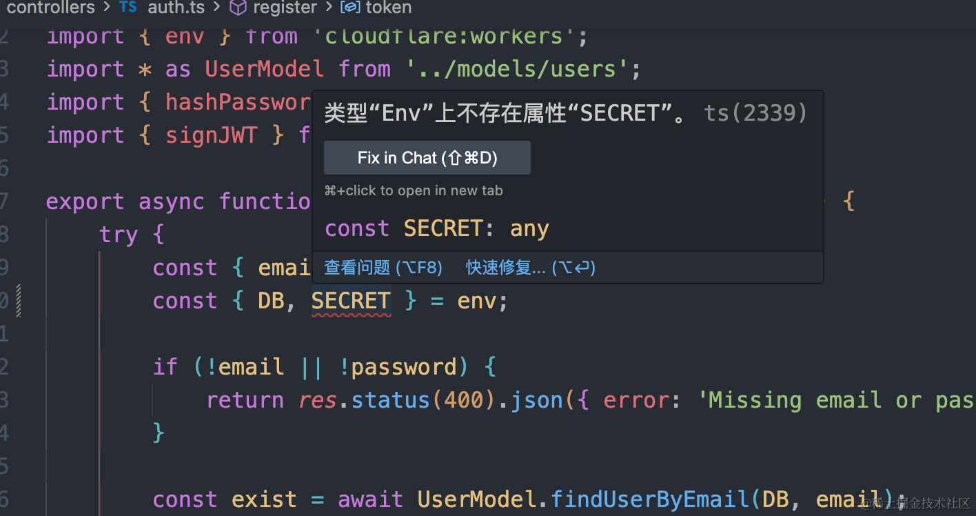 cloudflare使用了环境变量后提示类型“Env”上不存在属性“JWT_SECRET”。解决办法 1024小神 2026-01-01 25 阅读1分钟 大家好,我是1024小神,想进 技术群 / 私活群 / 股票群 或 交朋友都可以私信我,如果你觉得本文有用,一键三连 (点赞、评论、关注),就是对我最大的支持~ 如果你在环境变量中定义了一个变量,在代码中的env中使用的话, ts代码是不知道你有这个属性的,所以需要你使用命令 生成一下: 就会自动同步环境变量中的类型定义,代码就不会有提示了 如果你有好的想法或需求,都可以私信我,我这里有很多程序员朋友喜欢用代码来创造丰富多彩的计算机世界
