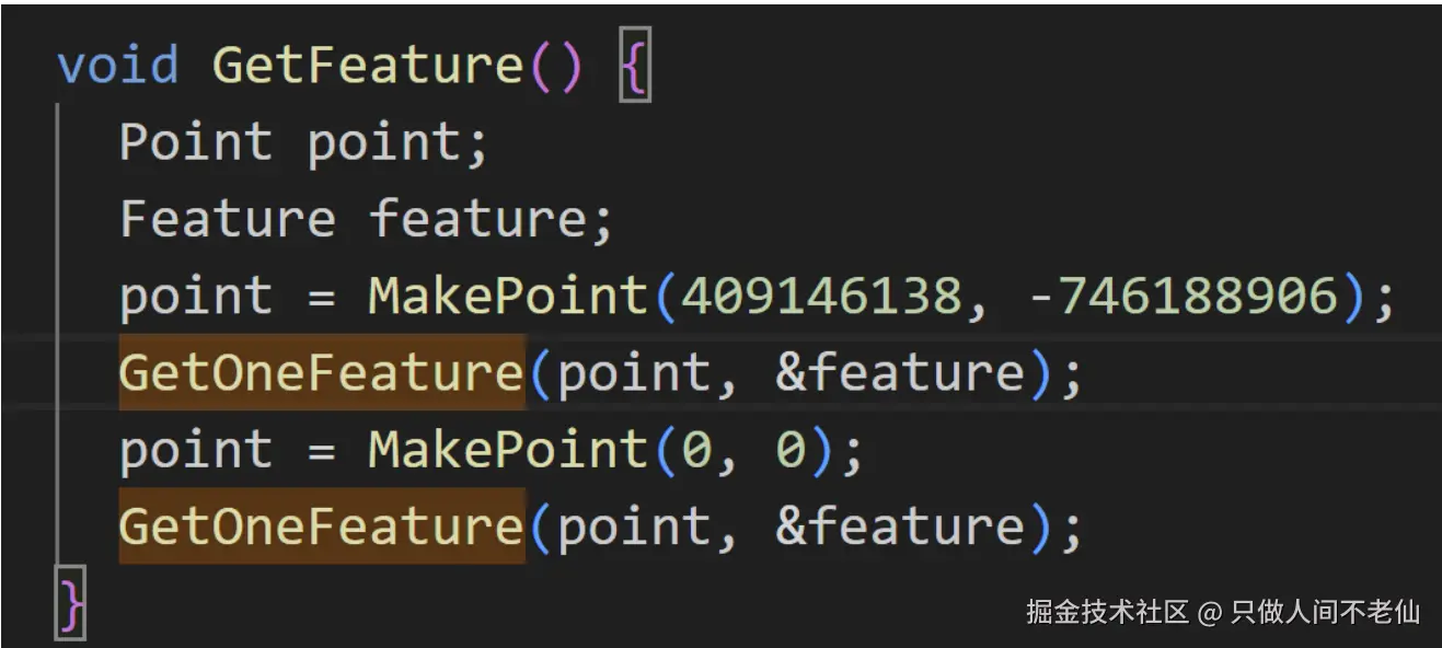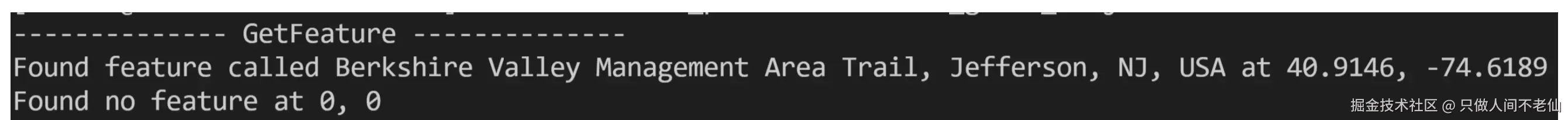 功能介绍:客户端向服务器请求点的特征信息。客户端传入一个点的信息,获取这个点的特征信息。在客户端测试程序中测试了两个点,从返回信息中可知,这两个点一个存在特征信息(指有名字信息),一个不存在特征信息。