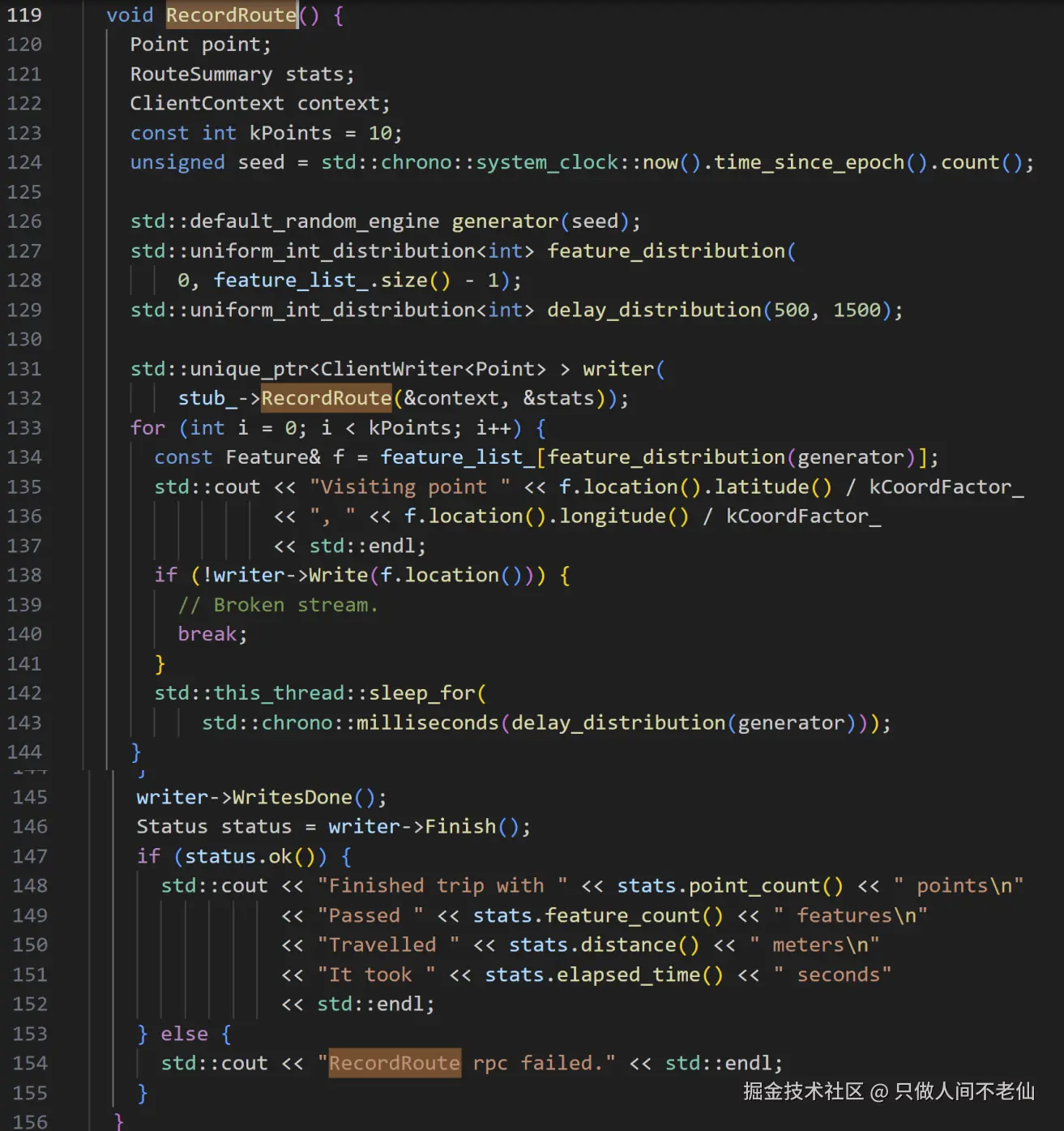 下面我将对 route_guide 示例代码进行简单分析。以下分析均使用个人仓库代码测试。