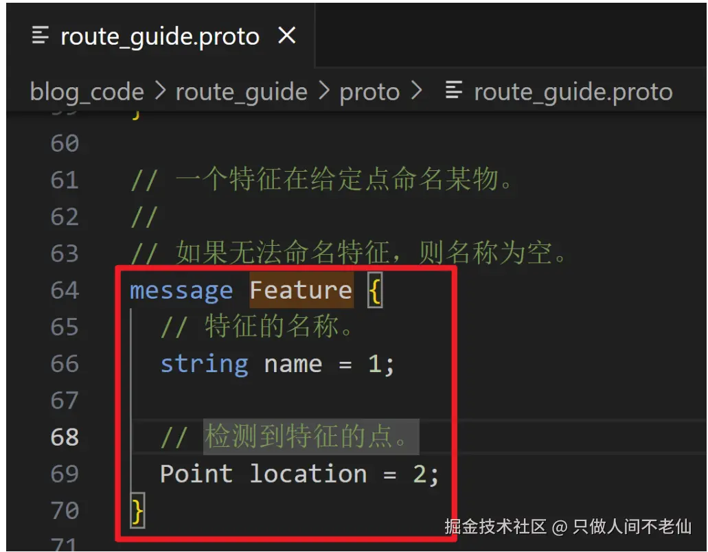 - 生成的文件:route_guide/proto/route_guide.pb.h;route_guide/proto/route_guide.pb.cc