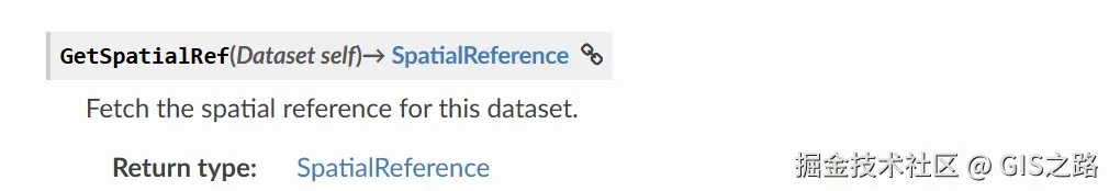 此外还有一个方法GetSpatialRef也可用于获取数据集空间参考信息。