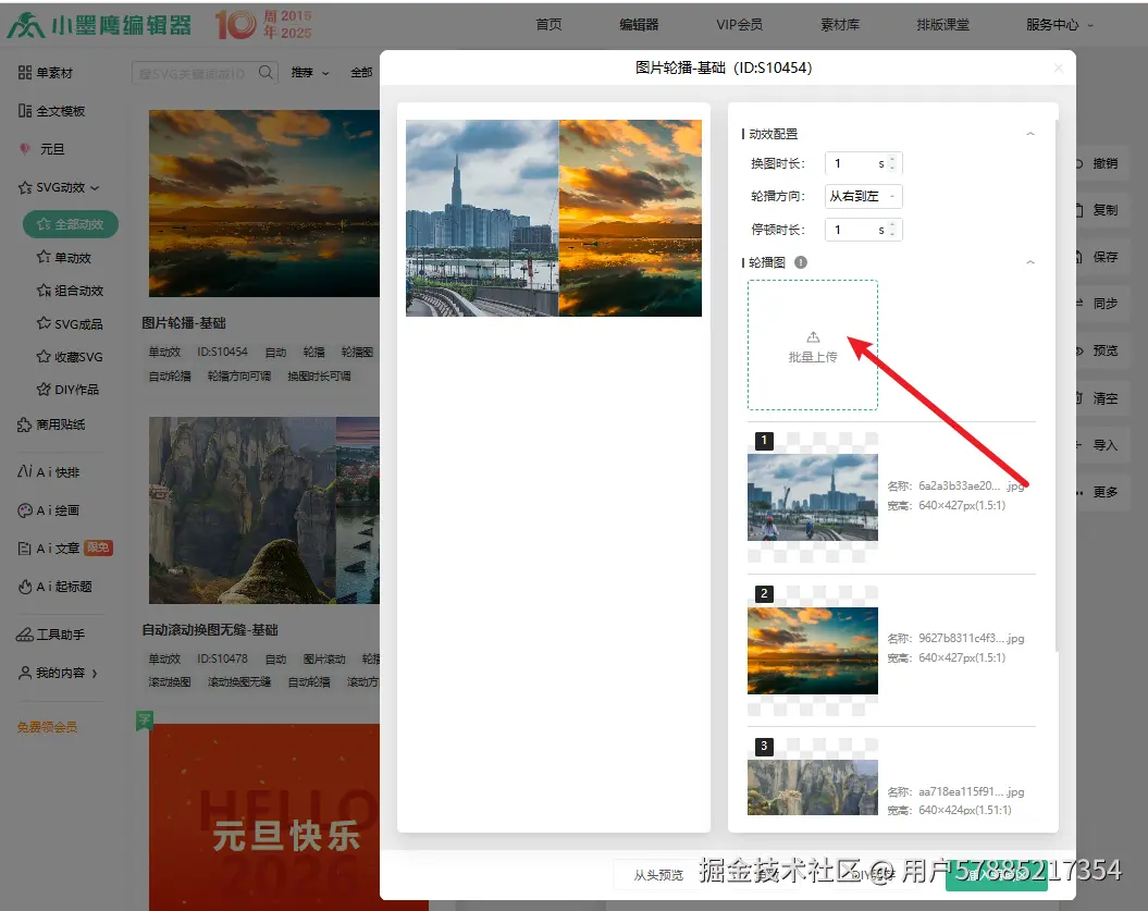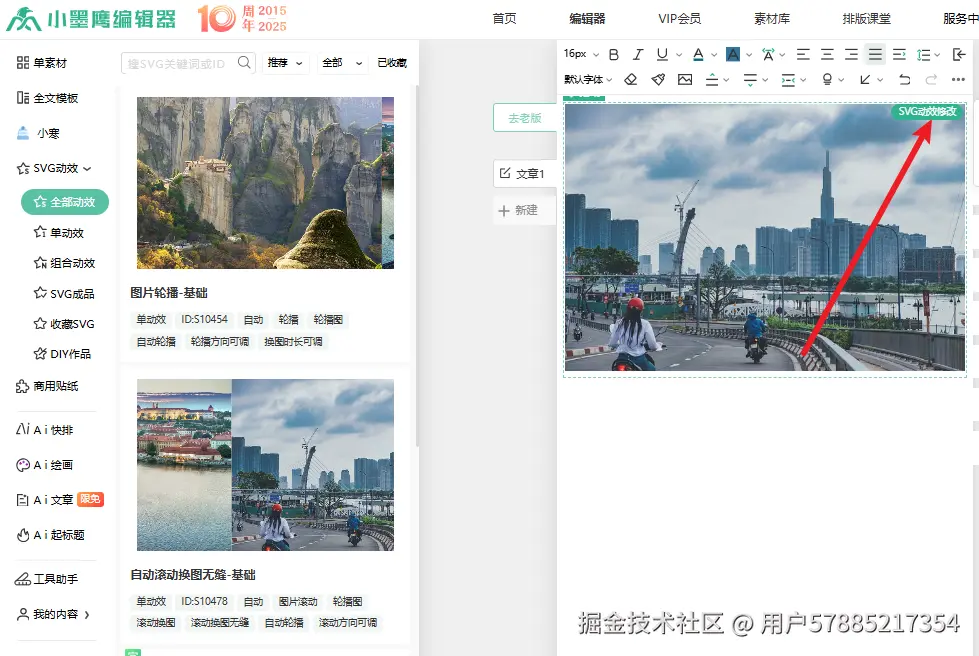 3、接下来替换成自己的图片:点击滑动模块右上角的「SVG 动效修改」;