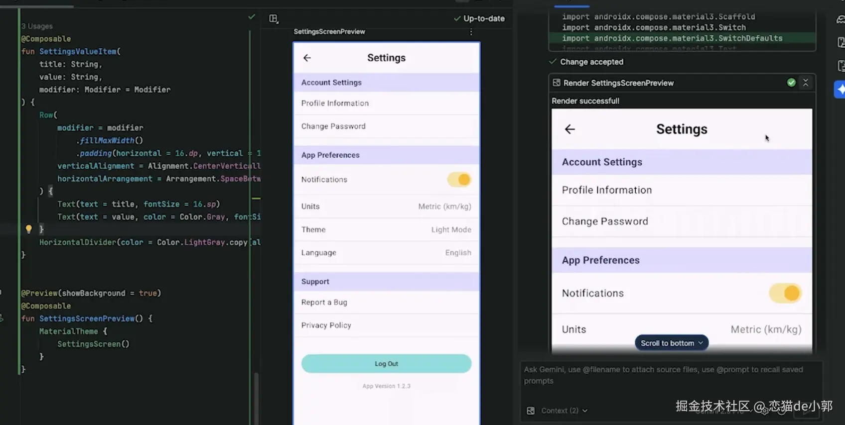 Render Compose Preview工具在聊天窗口中直接渲染预览,从而验证修改是否正确且可编译 -