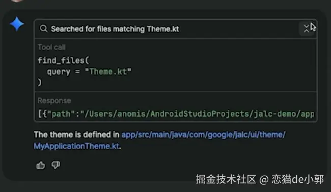 开发者询问:“主题在哪里定义?”,Agent 会推断并使用
