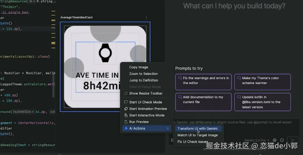 可以看到,未来的 Android Studio Agent 会有更加丰富的多模态处理能力,比如更好的设计稿理解,图片理解,可以做到设计图和现有 UI 的差异识别并进行改动,甚至直接生成预览效果,同时还支持 UI 检测等,对于 Android 开发者来说,以后也许真的就是动动嘴皮子而已。