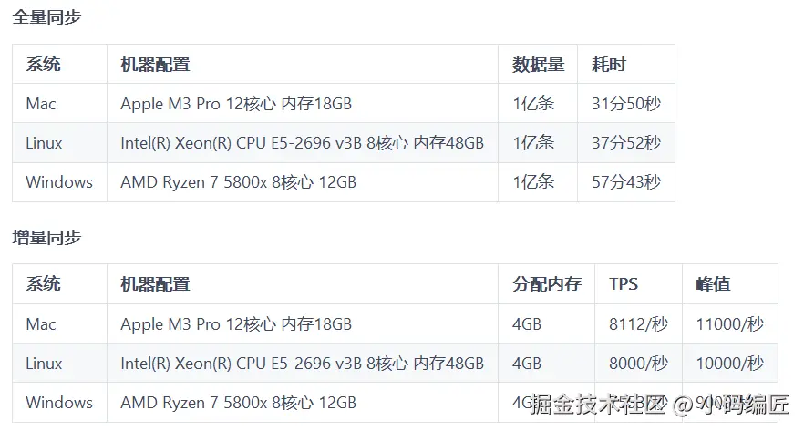 增量同步的 TPS 可达每秒 8000+ 条记录,峰值可达 11000 条/秒;