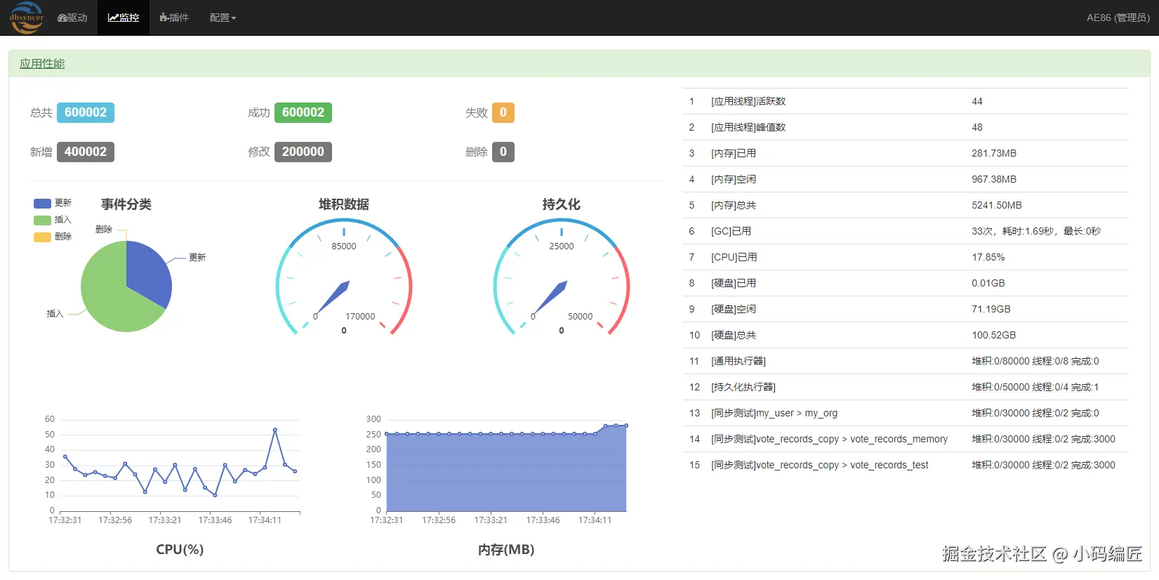 性能测试,在实际测试环境中,DBSyncer 展现出优异的性能表现。