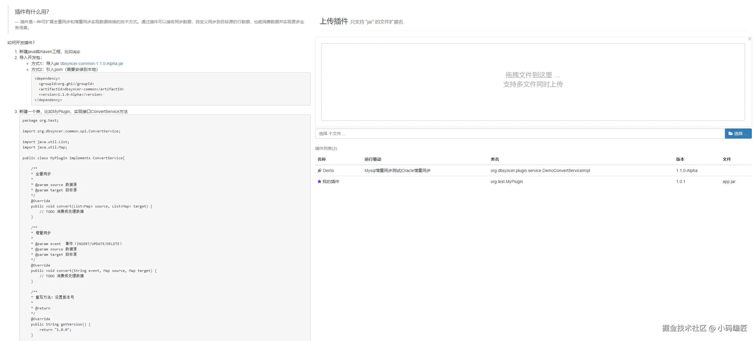 另外,DBSyncer 提供了丰富的可视化界面用于配置同步任务、查看运行状态,并支持通过上传自定义插件来扩展同步逻辑,满足不同业务场景下的定制化需求。