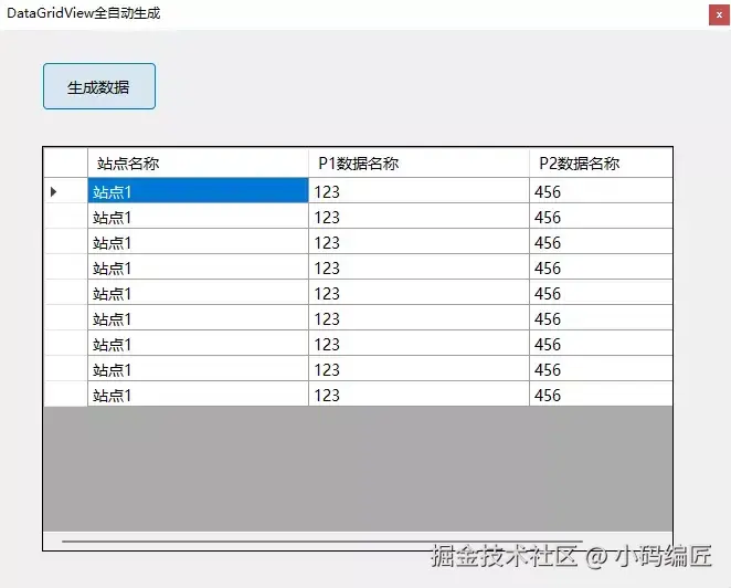 为按钮添加点击事件,生成测试数据并绑定到 DataGridView: