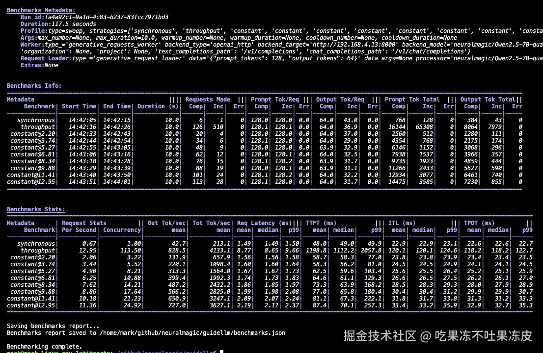 --profile,sweep 时是基准测试数量,concurrent 时是同时请求, constant / poisson 时是每秒请求数。 - --max-seconds:每次基准测试的最大持续时间(秒数)(也可以用 --max-requests 来限制请求数)。