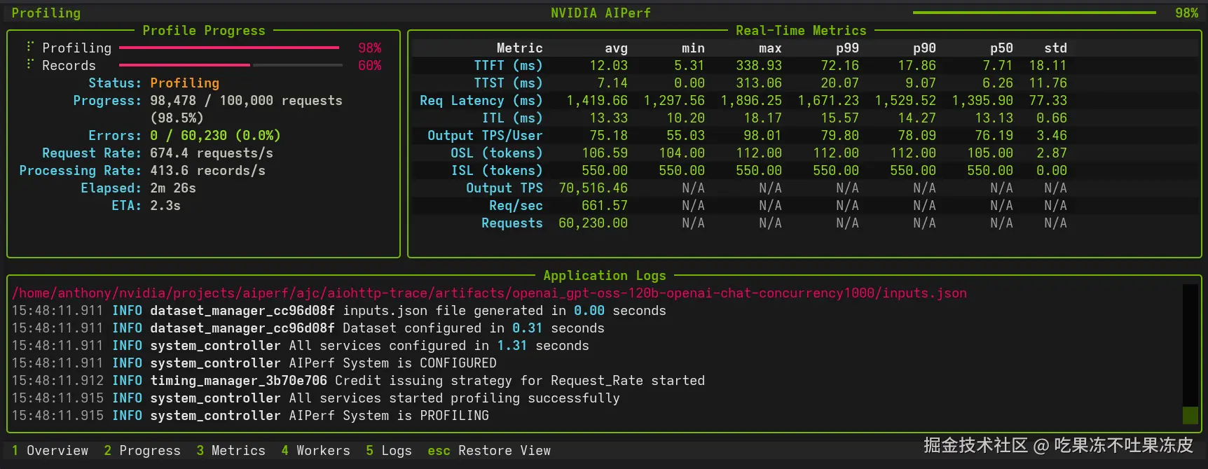 e2e latency = request_end_time - request_start_time。 - 每分钟完成的请求数(RPS):通常情况下,我们都希望系统能够处理并发请求。可能是因为你正在处理来自多个用户的输入或者可能有一个批量推理任务。