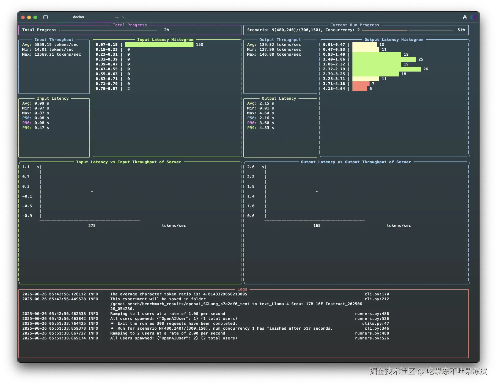 输出Token吞吐量 = output_tokens / e2e latency - 总吞吐量:包括输入的Token和生成的Token。