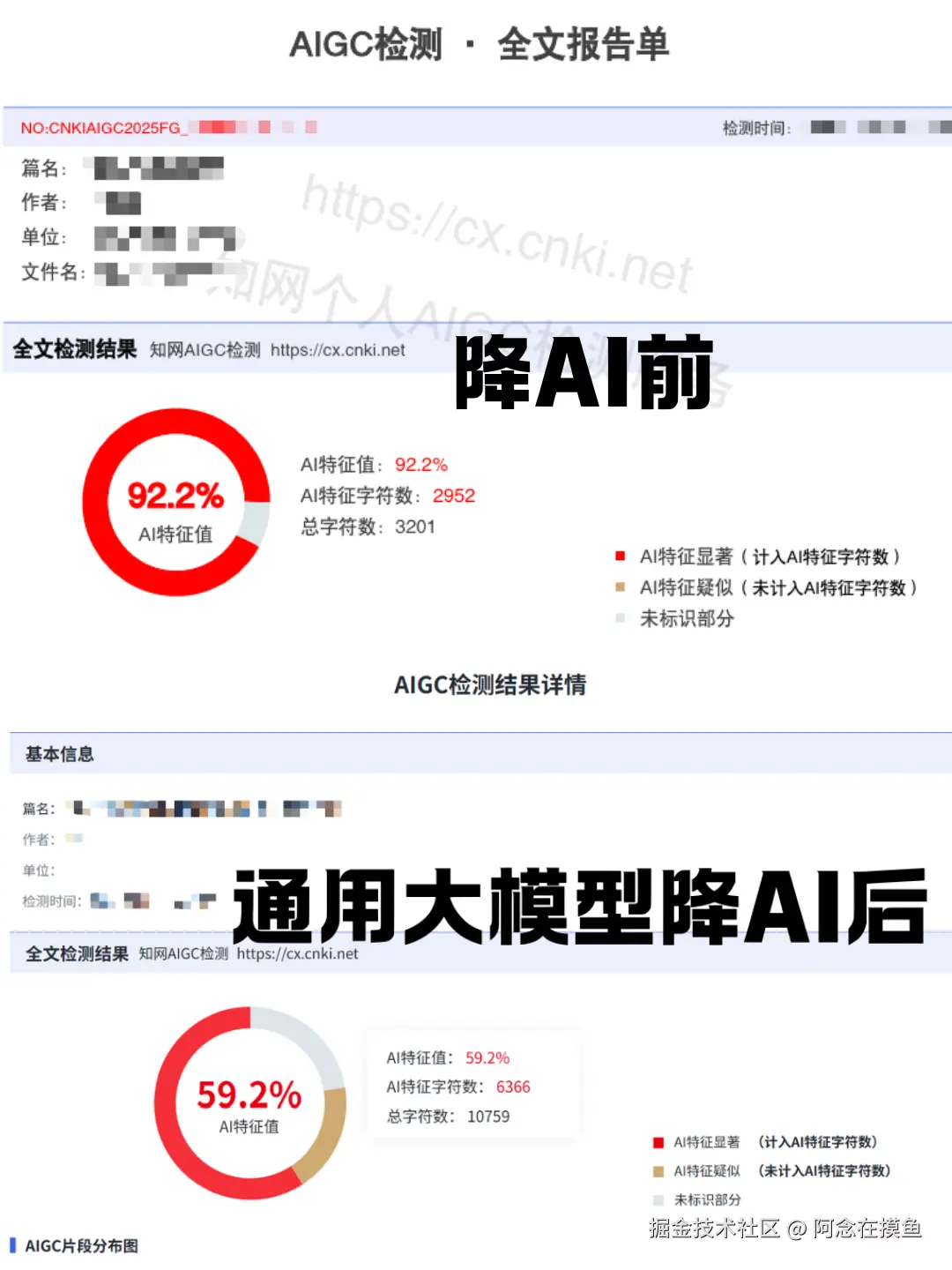 话不多说,先看结果,这是我用大模型加提示词在知网AI率检测结果,AI率能降下去,但是降幅不大,适合AI率本身就不高的文章,提示词给大家放在下面了。用法就是把标红的段落和提示词一起喂给AI。