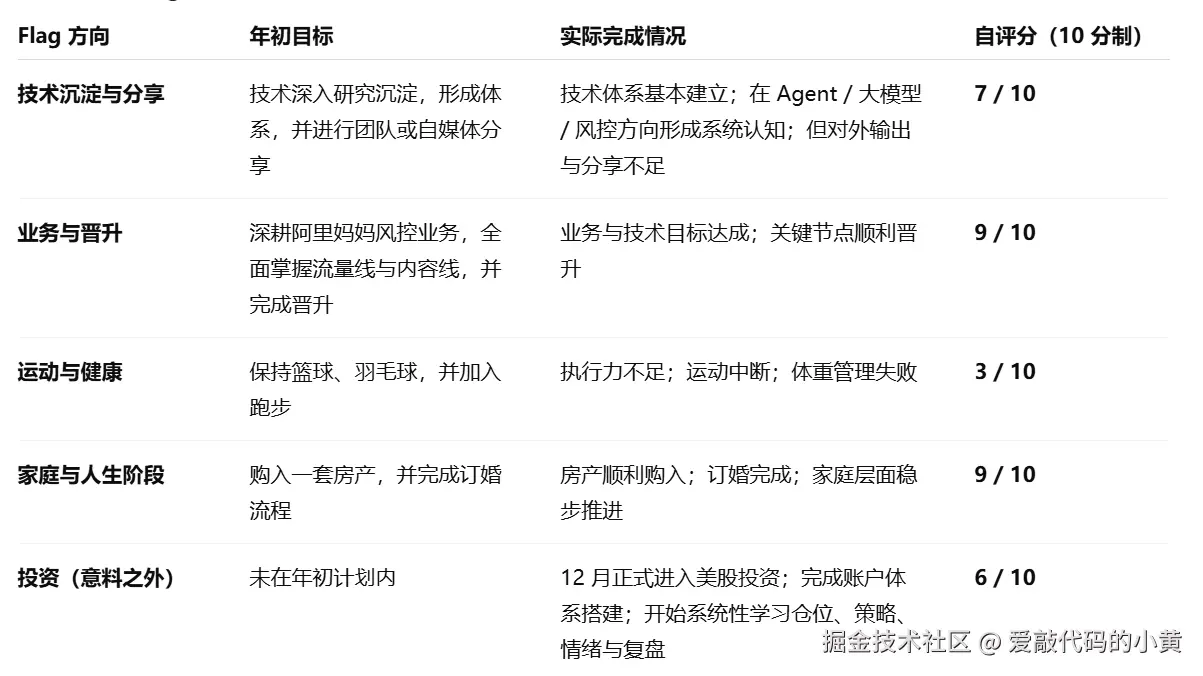 接下来,也对 2025 年年初立下的 Flag 做一次完整复盘,给自己这一年的选择与投入,留下一份相对坦诚的答案。