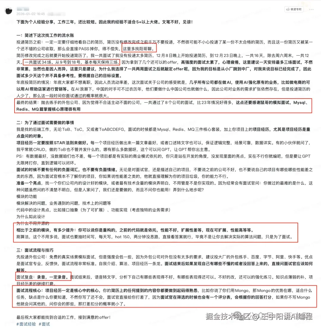 说实话,他总结的很多点,甚至比很多所谓的“面试宝典”都要精辟和实用。因为这不是理论,是刚从前线下来、带着硝烟味的一手战报。