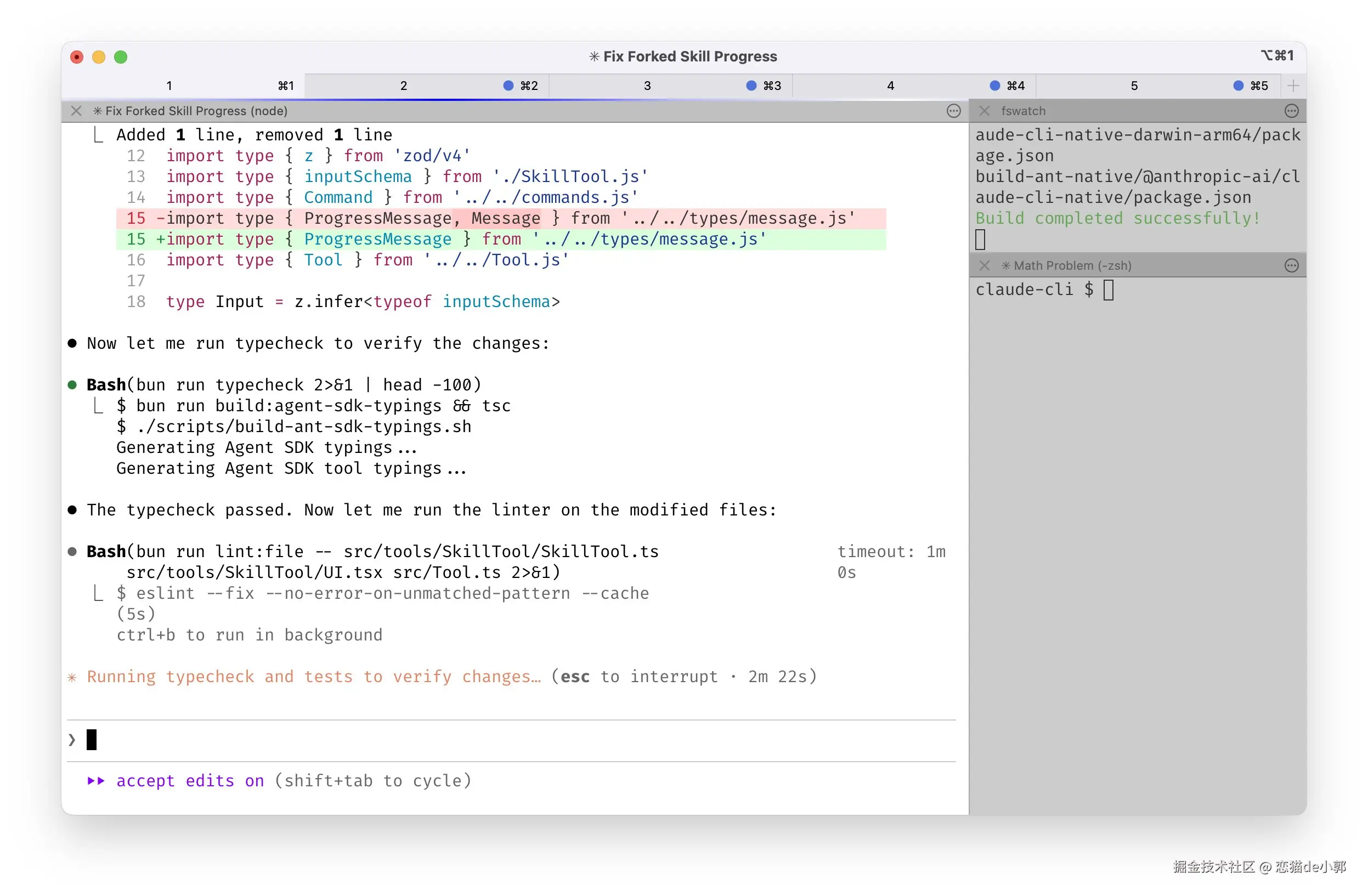 - 在端中并行运行 5 个 Claude 进程,并且将标签页编号为 1-5,通过系统通知来了解哪个 Claude 进程需要人工处理,这样可以有效提供任务并行效果: