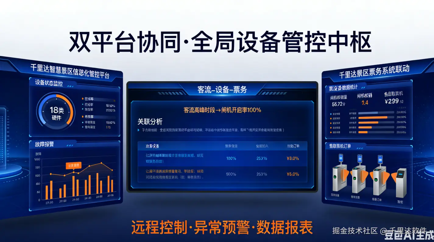 - 千里达景区票务系统:票务类设备业务联动核心: