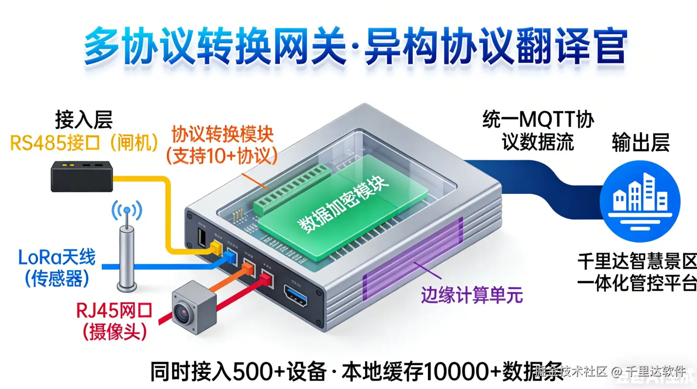 网关作为核心适配节点,具备“多协议兼容、数据加密、边缘计算”三大核心能力: