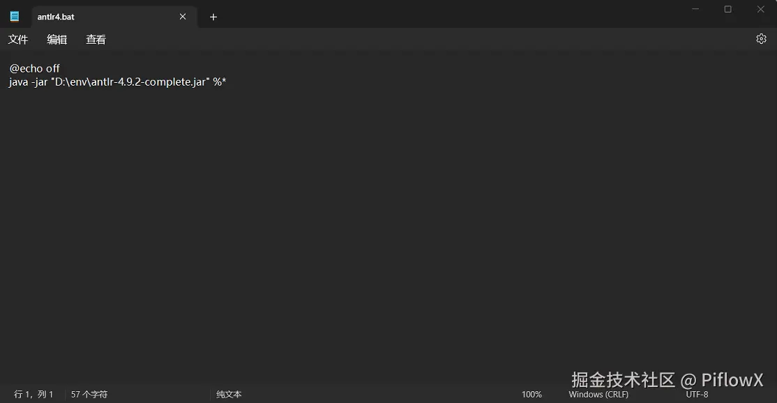 创建 antlr4.bat 文件(保存到 PATH 中的目录):