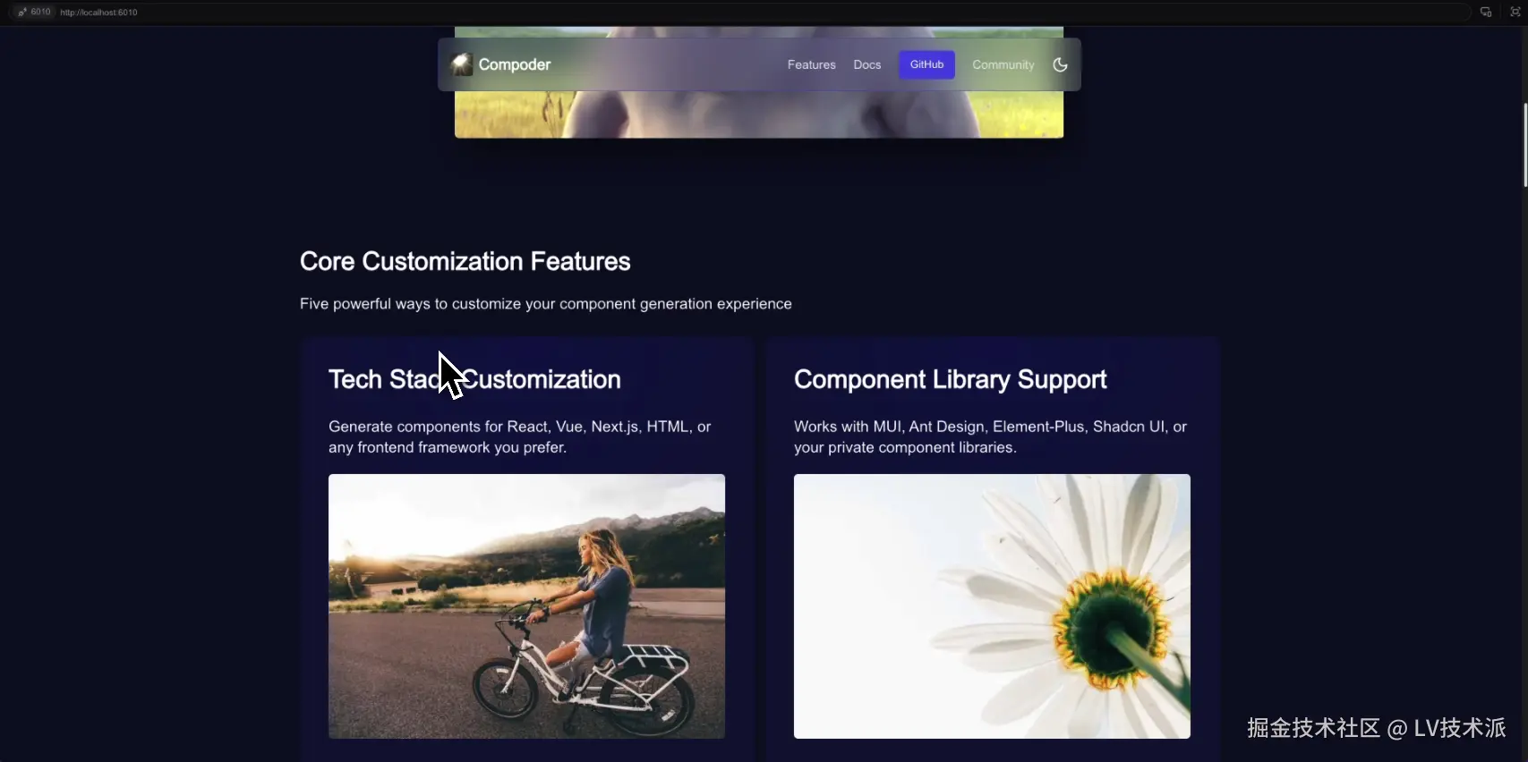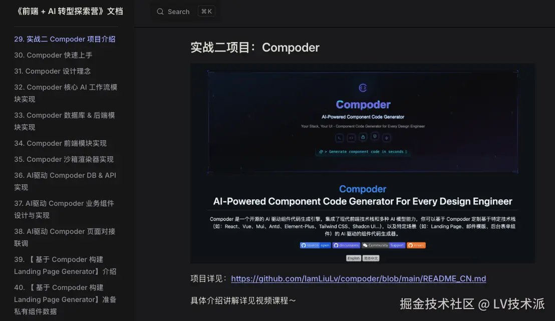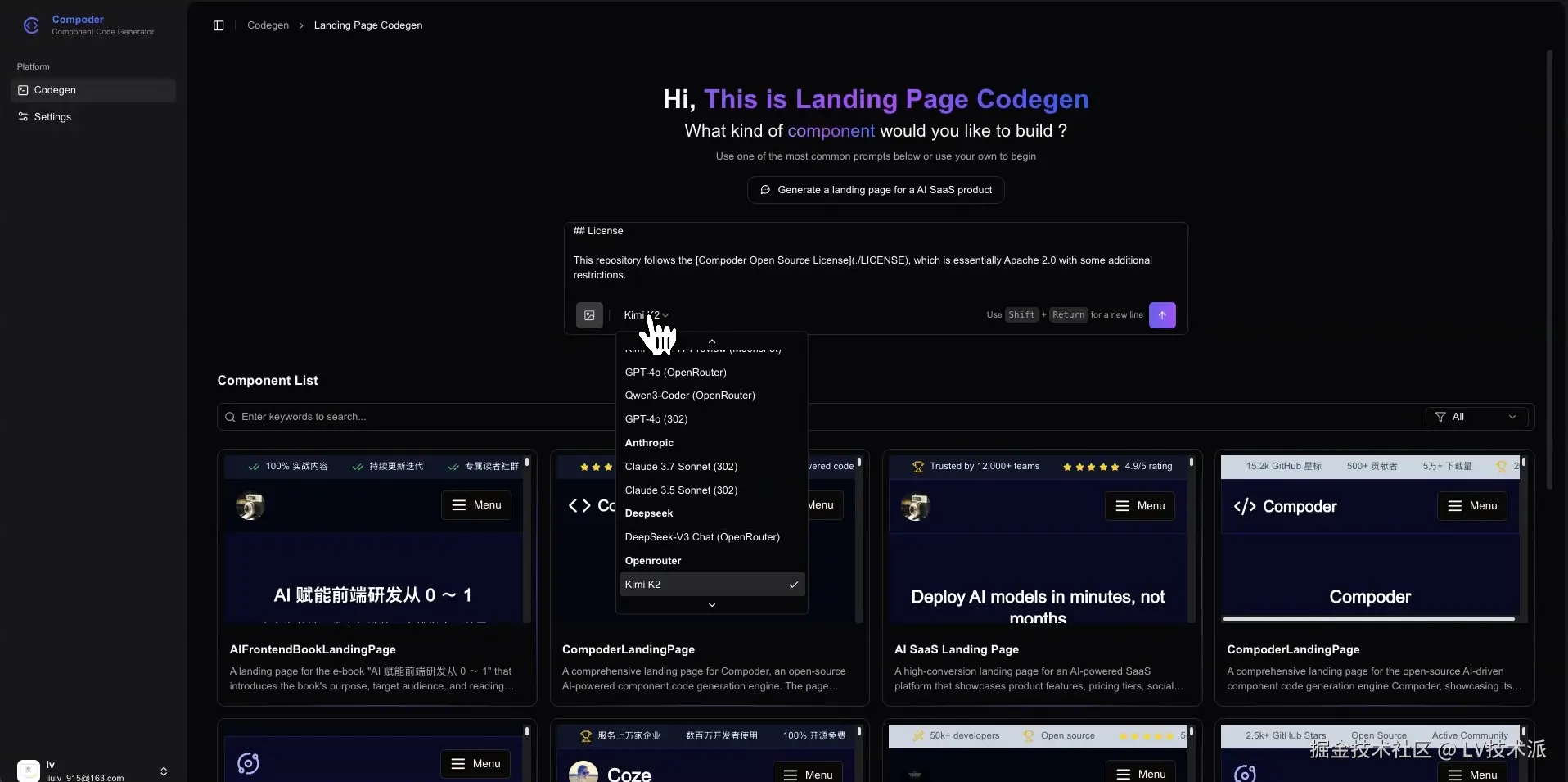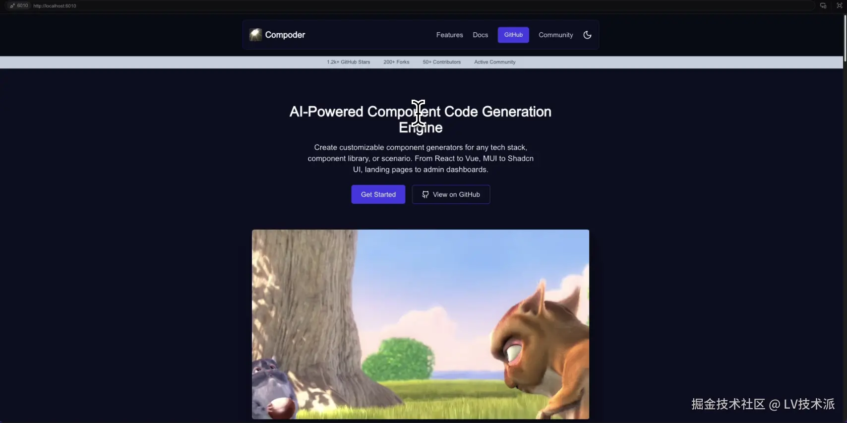 需求是把 Compoder 的 Readme 给了过去(github.com/IamLiuLv/co… 生成 Compoder 本身的 Landing Page 代码。