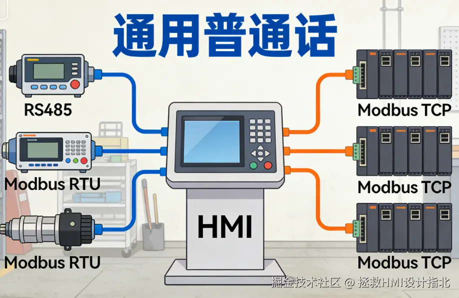 HMI要和PLC、传感器等设备“说话”,必须靠“通信协议”——就像两个人对话要讲同一种语言。这篇文章拆解3个最常用的协议,帮你搞懂“它们是什么、什么时候用”。