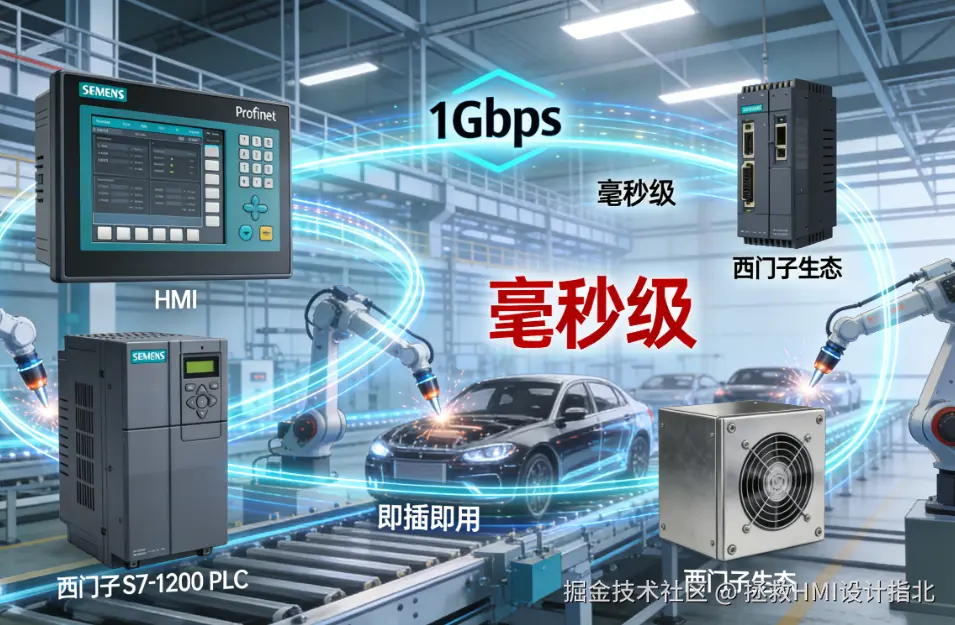 - 西门子生态:主要用于西门子设备(比如西门子PLC、变频器),兼容性强——西门子HMI和西门子PLC用Profinet连接,几乎“即插即用”,不用复杂设置;