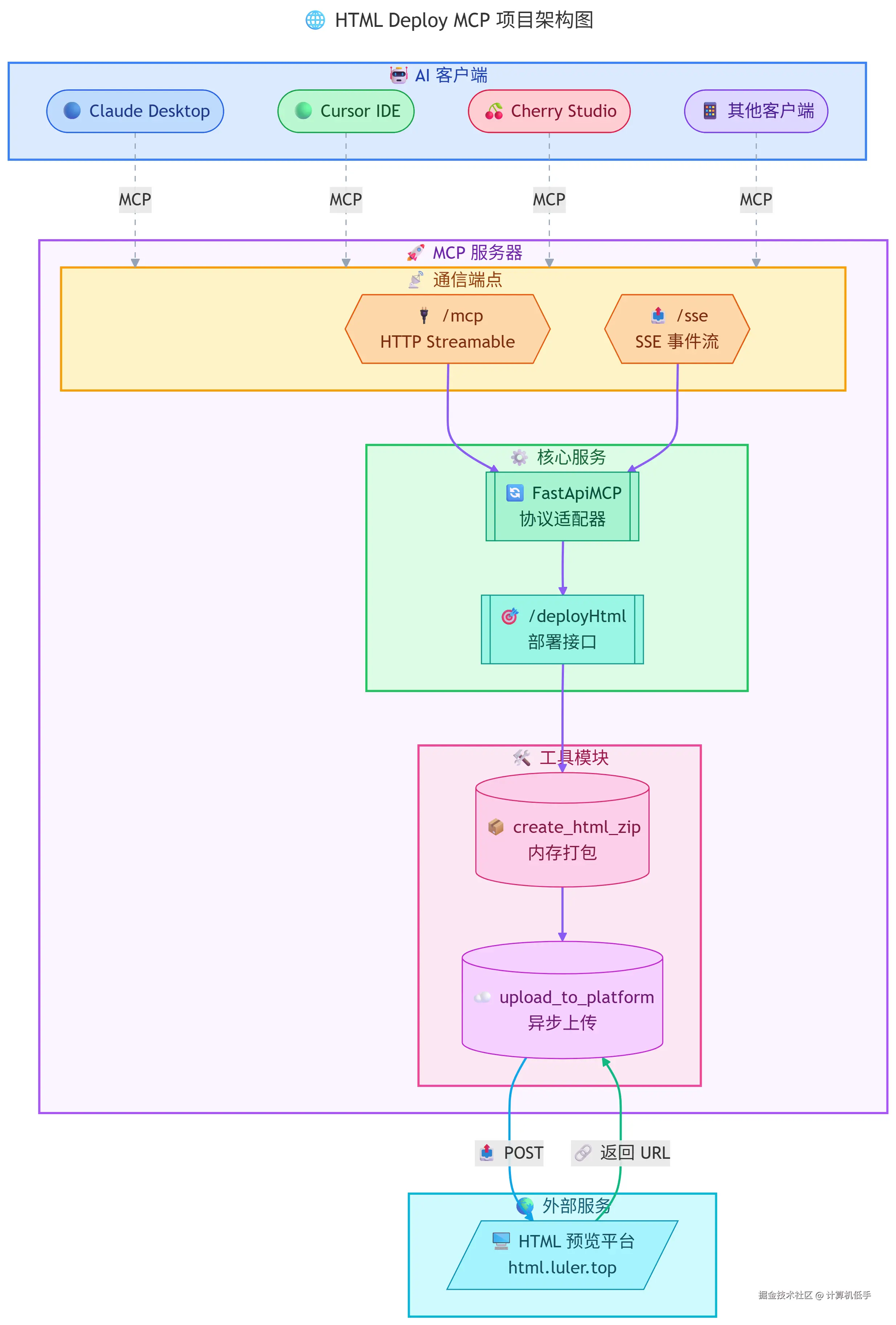 - 这个一个MCP服务,可以把AI生成的HTML代码快速部署到公网上,获得一个公网页面访问链接