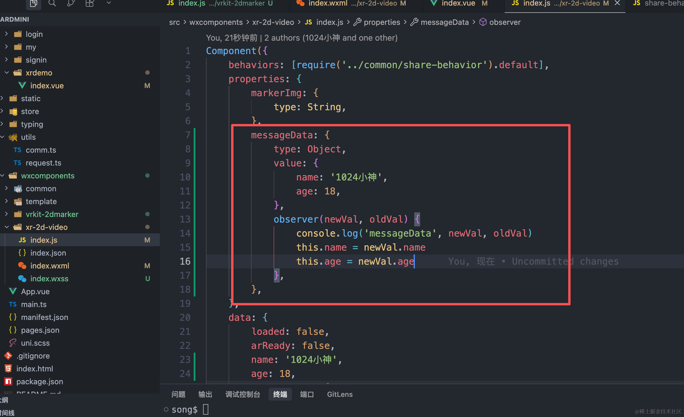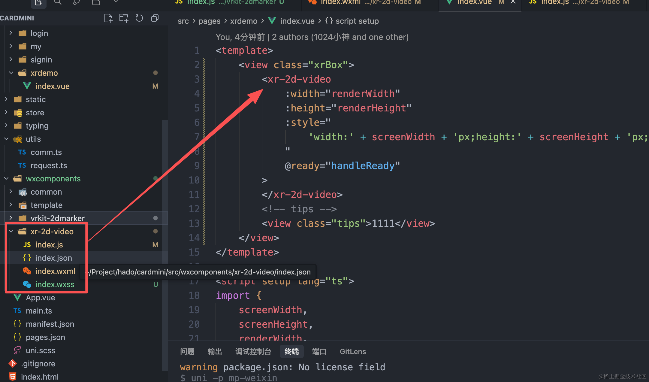 在unipp的vue3项目中创建了一个微信小程序原生的组件,并将其引入到vue3中使用:
