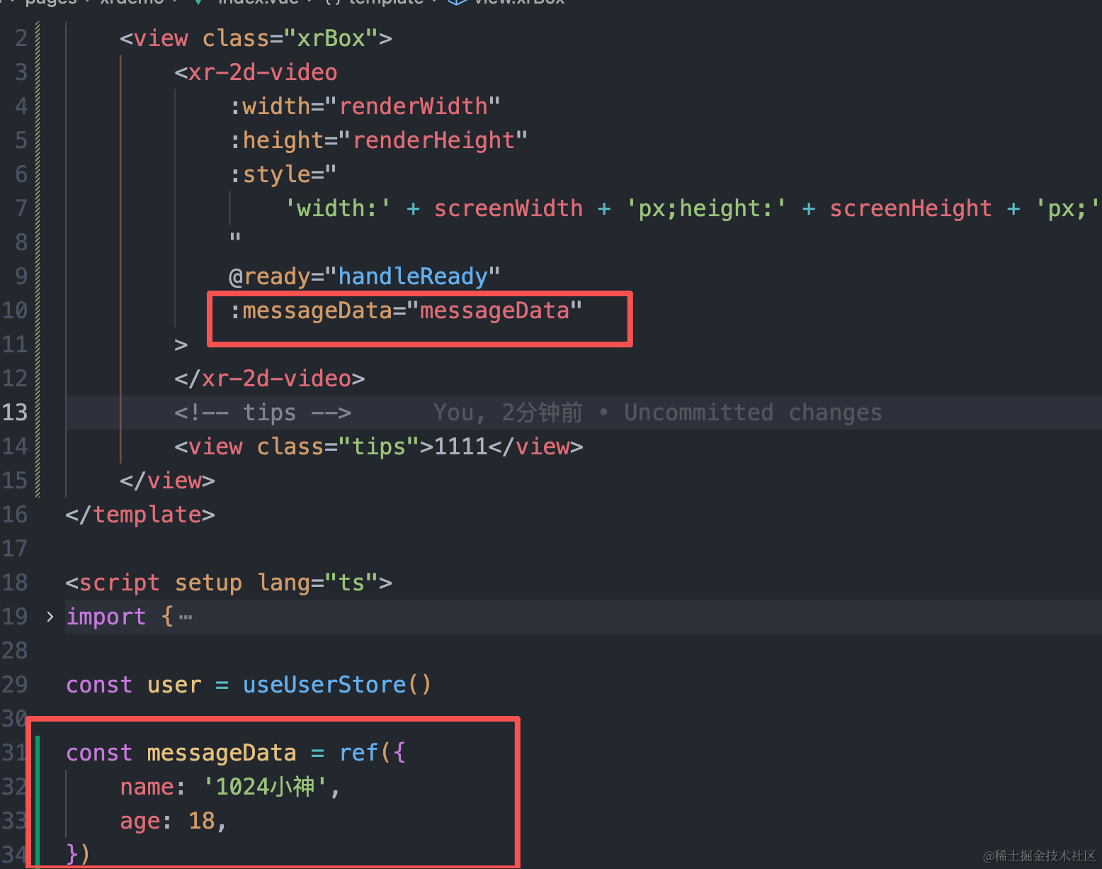 然后在vue3中定义变量传给小程序组件: