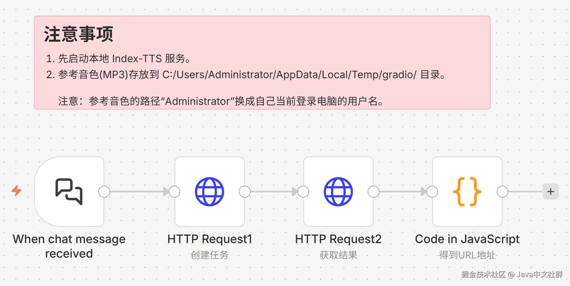 - 槽点: 官方说分三步,实际上得走四步。最麻烦的是,你必须先把自己要克隆的音频上传到服务器(比如阿里的 OSS),拿到一个 URL 地址后才能开始。他的操作步骤: