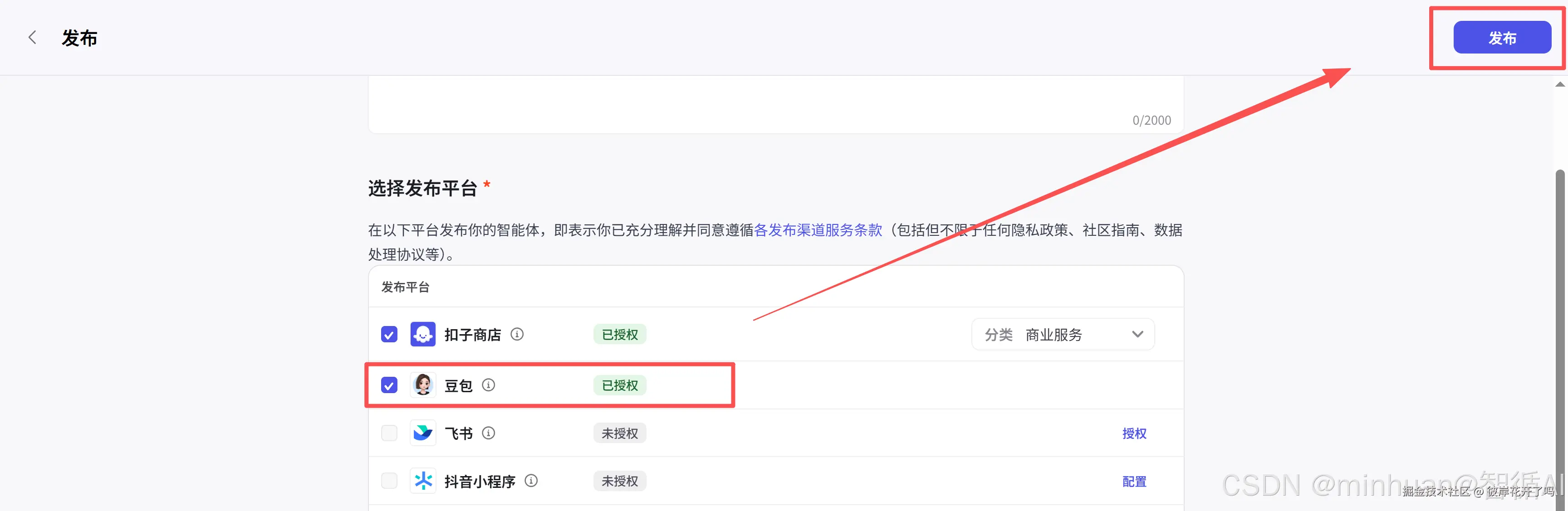 【发布】后,继续【确认】,选择发布平台,此处以“豆包”为例;