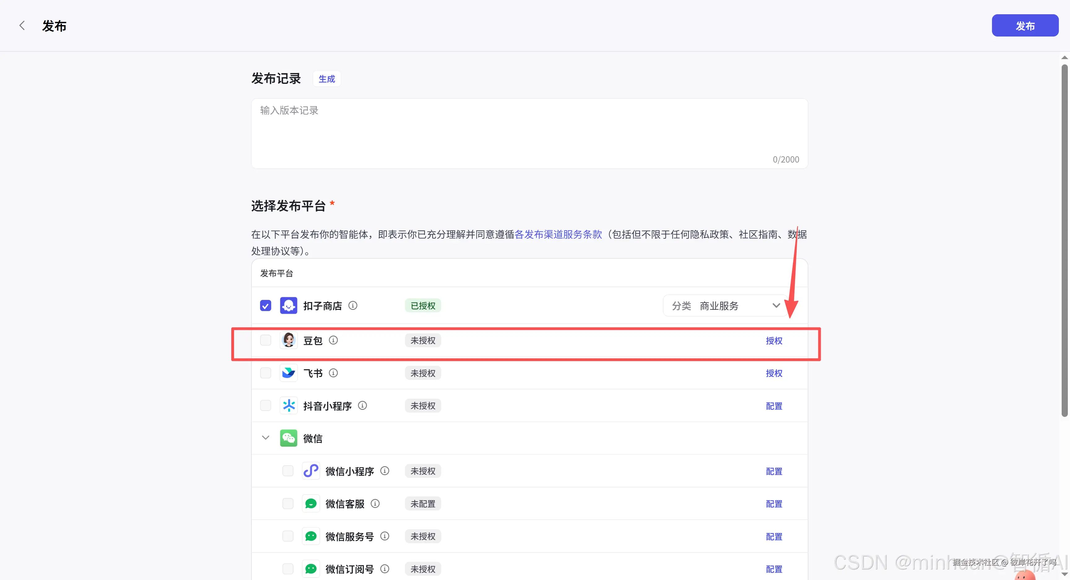 发布到平台要先进行授权操作,点击【同意授权】即可;