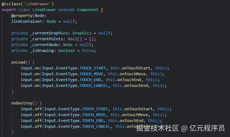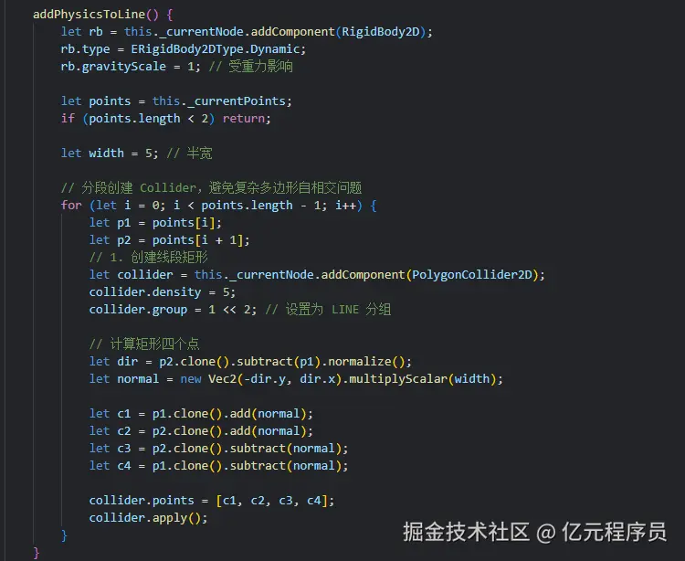 由于线是玩家在游戏过程中实时绘制出来的,而且是不规则的,我们需要在代码中进行动态添加,而且还要分段添加,所以我们需要通过addComponent动态添加。