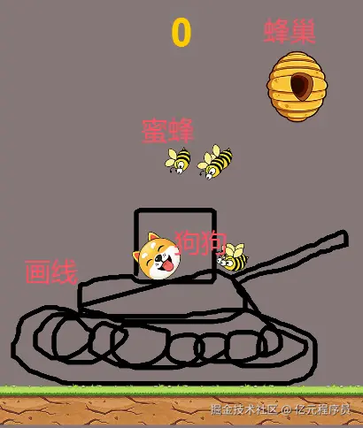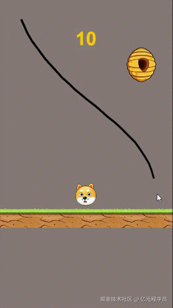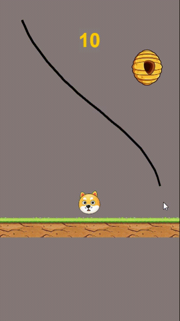 狗狗:游戏的主角,我们要通过画线对它进行保护,狗狗在倒计时结束后未掉落和被蜜蜂攻击即可通关,否则失败。