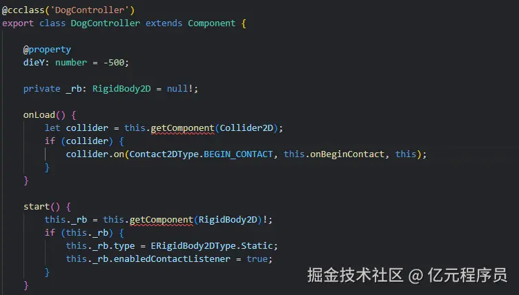 想要在代码中根据碰撞进行相关逻辑处理,可以通过监听碰撞组件的BEGIN_CONTACT事件,例如判断狗狗是否被蜜蜂攻击到和狗狗是否掉到水里。