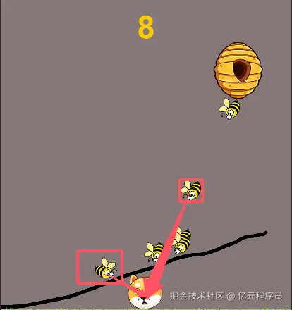 此外,当蜜蜂碰撞到线时,我们可以做一个后退效果,然后继续进攻,形成不断攻击的效果。
