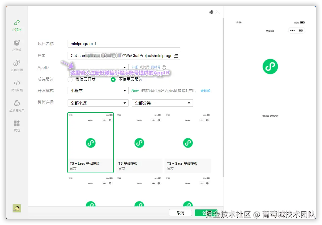 完成以上准备工作后,就可以打开微信开发工具,创建第一个微信小程序项目。