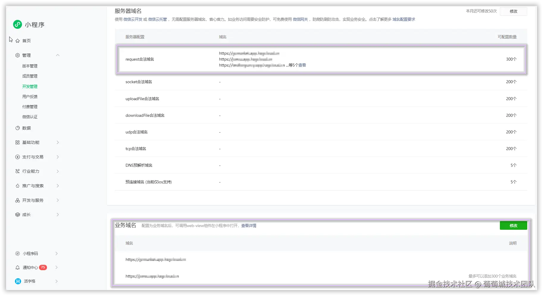 - 活字格发布的应用需要有效的域名且绑定HTTPs证书,并且需要在微信小程序后台配置request合法域名 以及业务域名;
