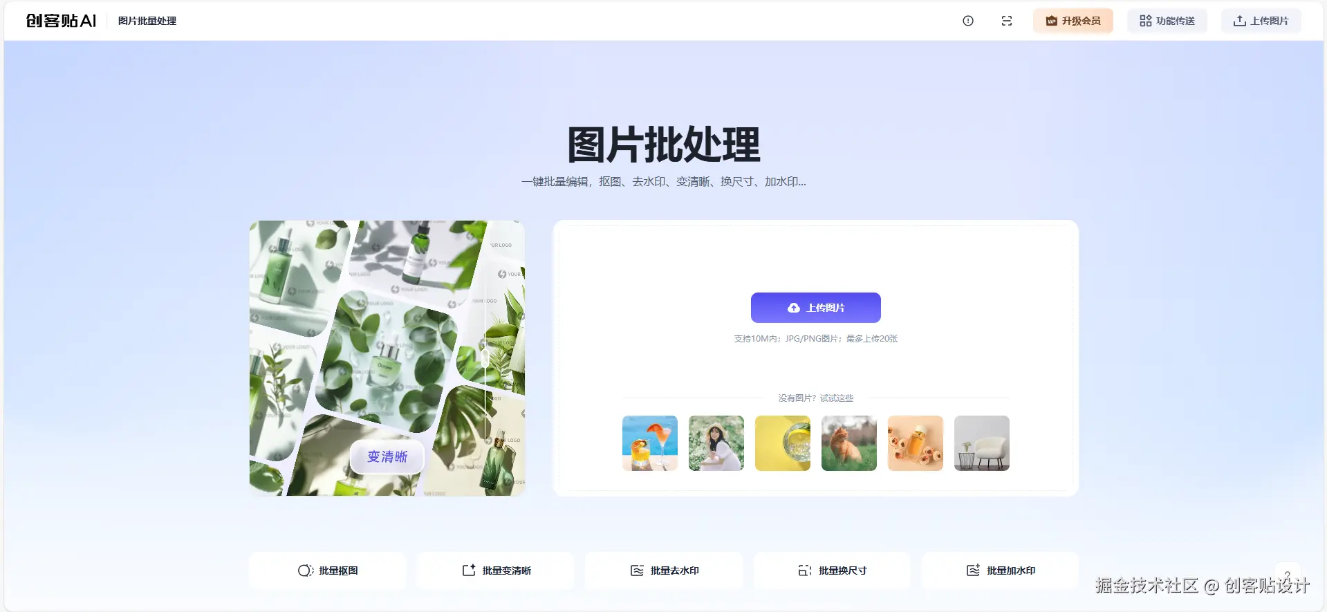 而 创客贴的优势,在于把 AI 修图和图片批处理真正结合在了一起。