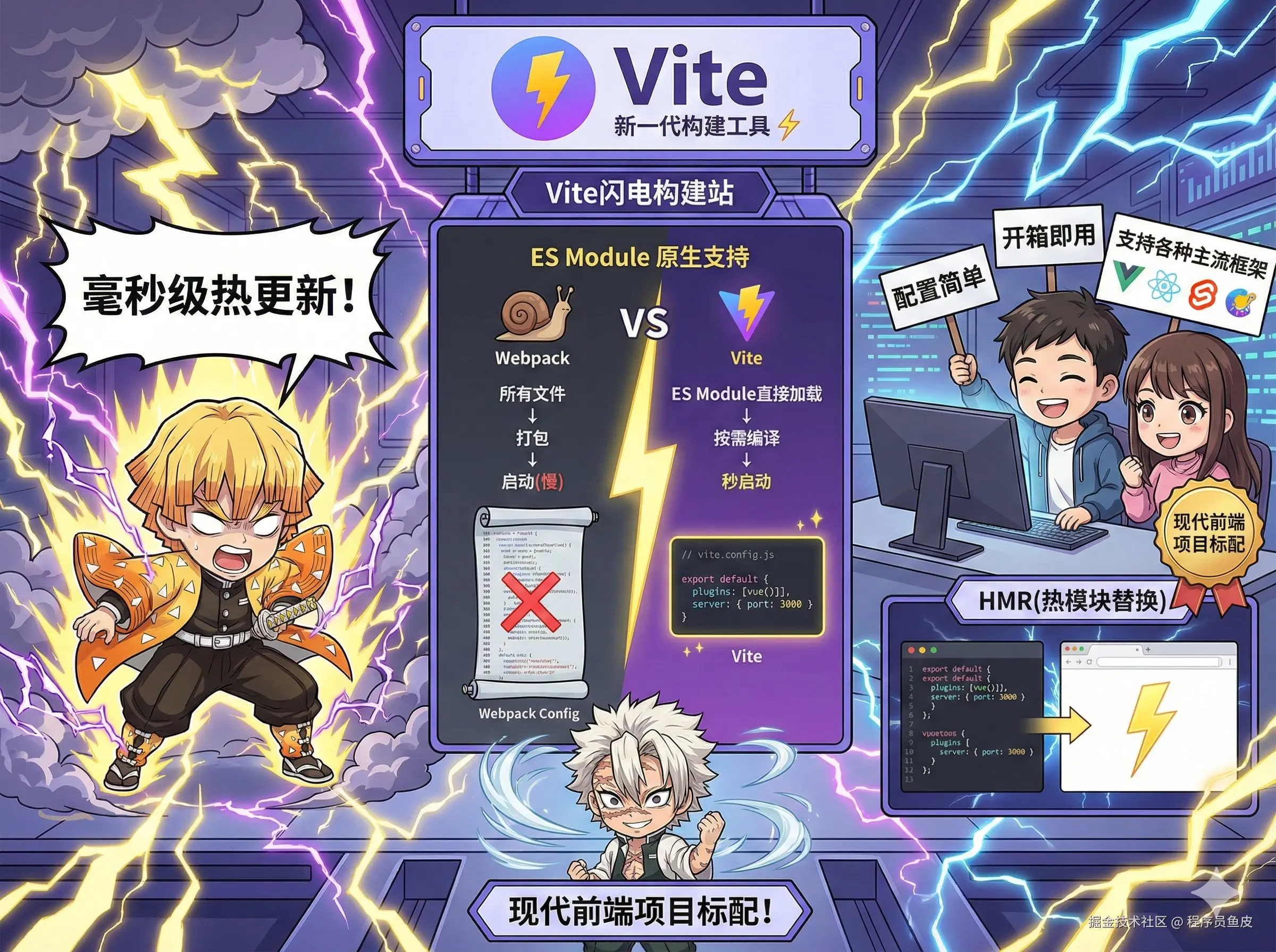 新一代构建工具,Webpack 终结者。它用原生 ES Module 实现毫秒级热更新,冷启动速度吊打 Webpack。配置简单、开箱即用,开发体验好到飞起。而且支持各种主流前端框架,已经成为现代前端项目的标配,必须给到 夯!