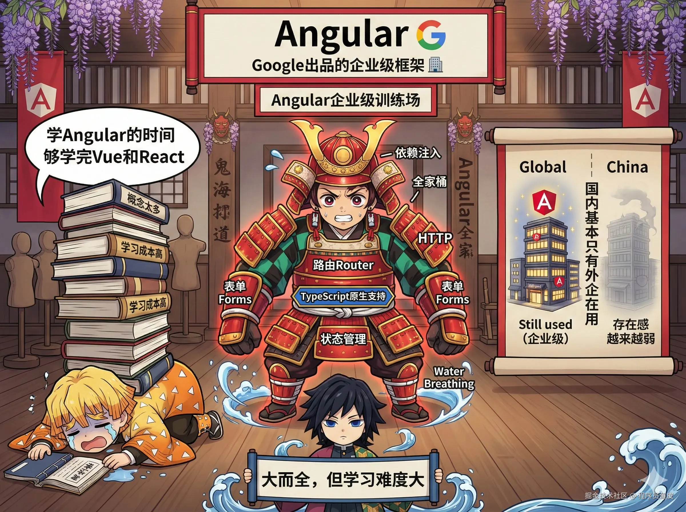 虽然 Angular 的全球市场还行,但在国内的存在感越来越弱了,基本只有外企在用。给到 NPC。