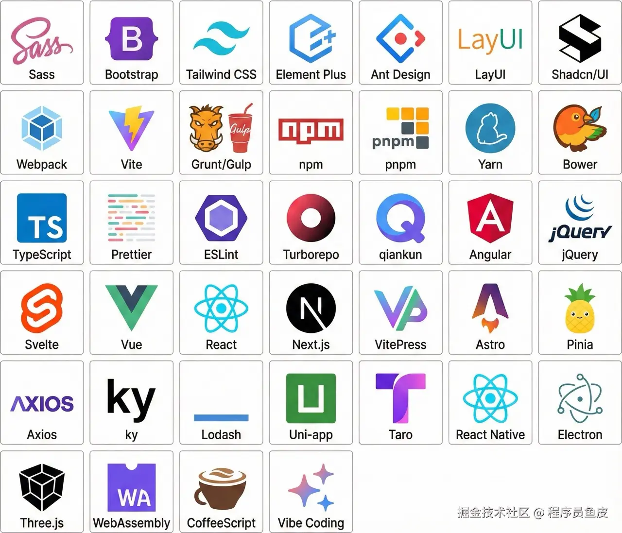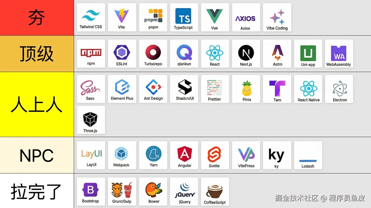 大家好,我是程序员鱼皮。从夯到拉,锐评 39 个前端技术,一口气说完!