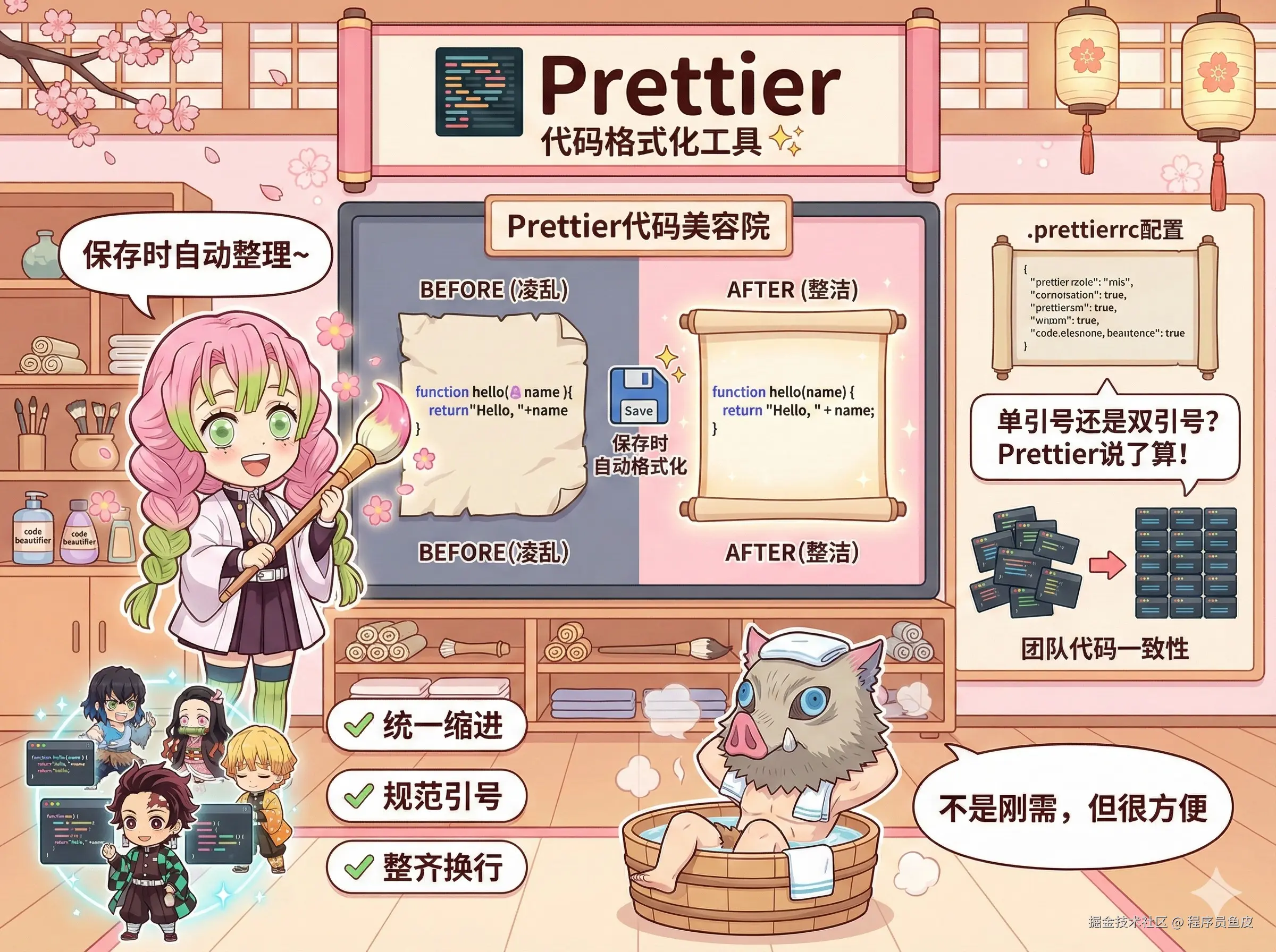 代码格式化工具,团队协作神器。它能自动把你的代码按统一规则格式化,保存时自动整理缩进、换行、引号等。不管你喜欢单引号还是双引号,Prettier 说了算,同一个项目的代码就是要整整齐齐。但考虑到不是刚需,给到 人上人。