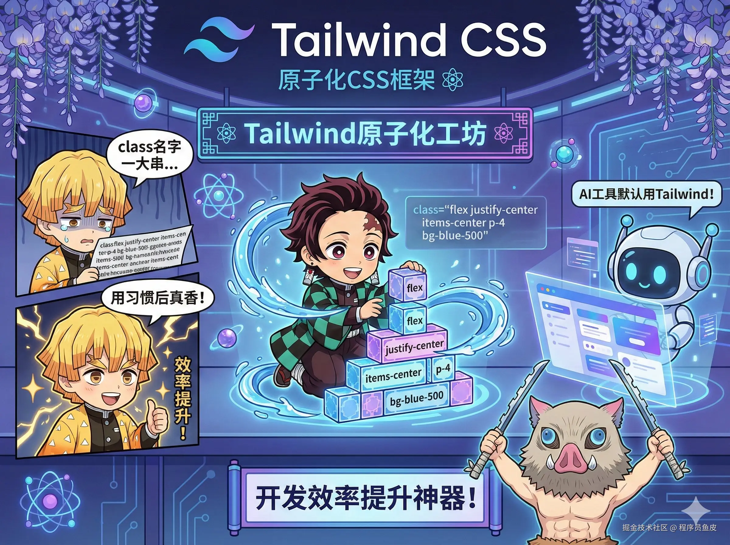 有朋友刚开始可能会觉得这玩意儿丑,class 名字一大串,觉得不就是把 CSS 写到 HTML 里了吗?但是用习惯后真香,能明显提升开发效率;再配合组件化开发,完全不用担心样式冲突。